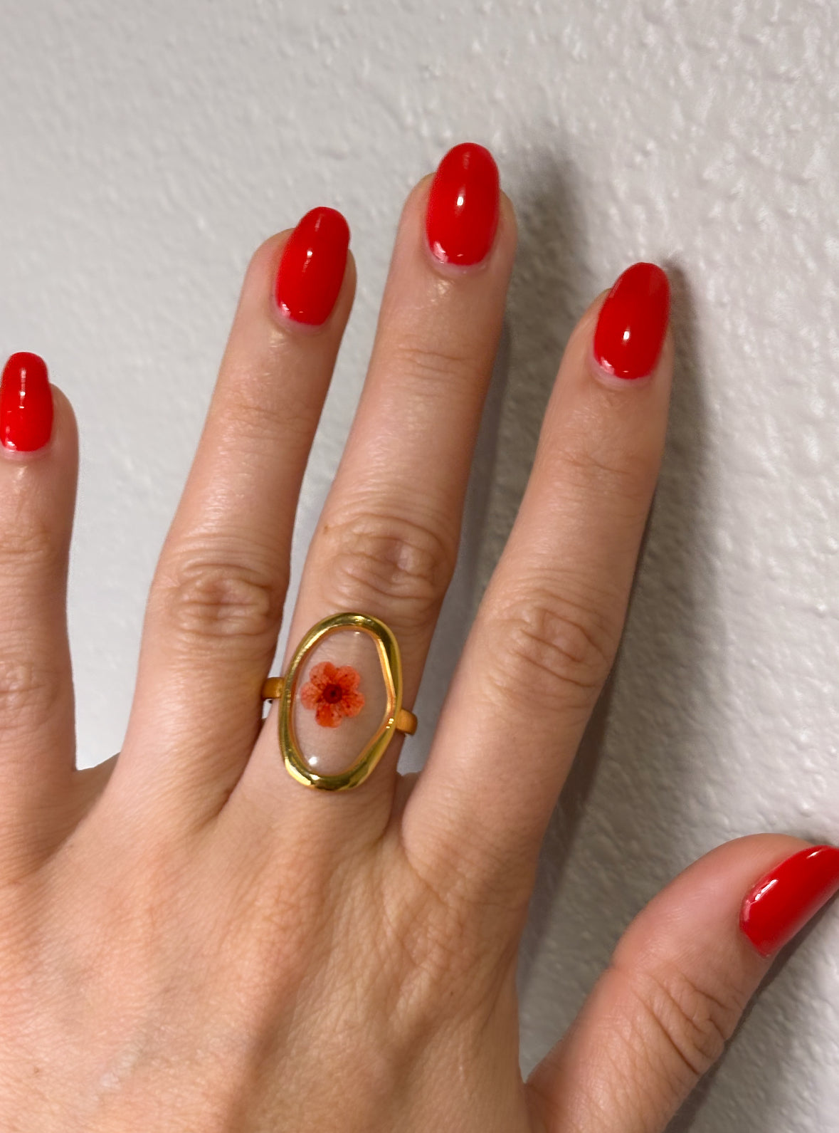 Introducing the Spring All Year Ring - a stunning adjustable piece featuring a handcrafted dried flower embedded in resin. Bring a touch of nature to any outfit, all year round. Expertly crafted for timeless beauty.