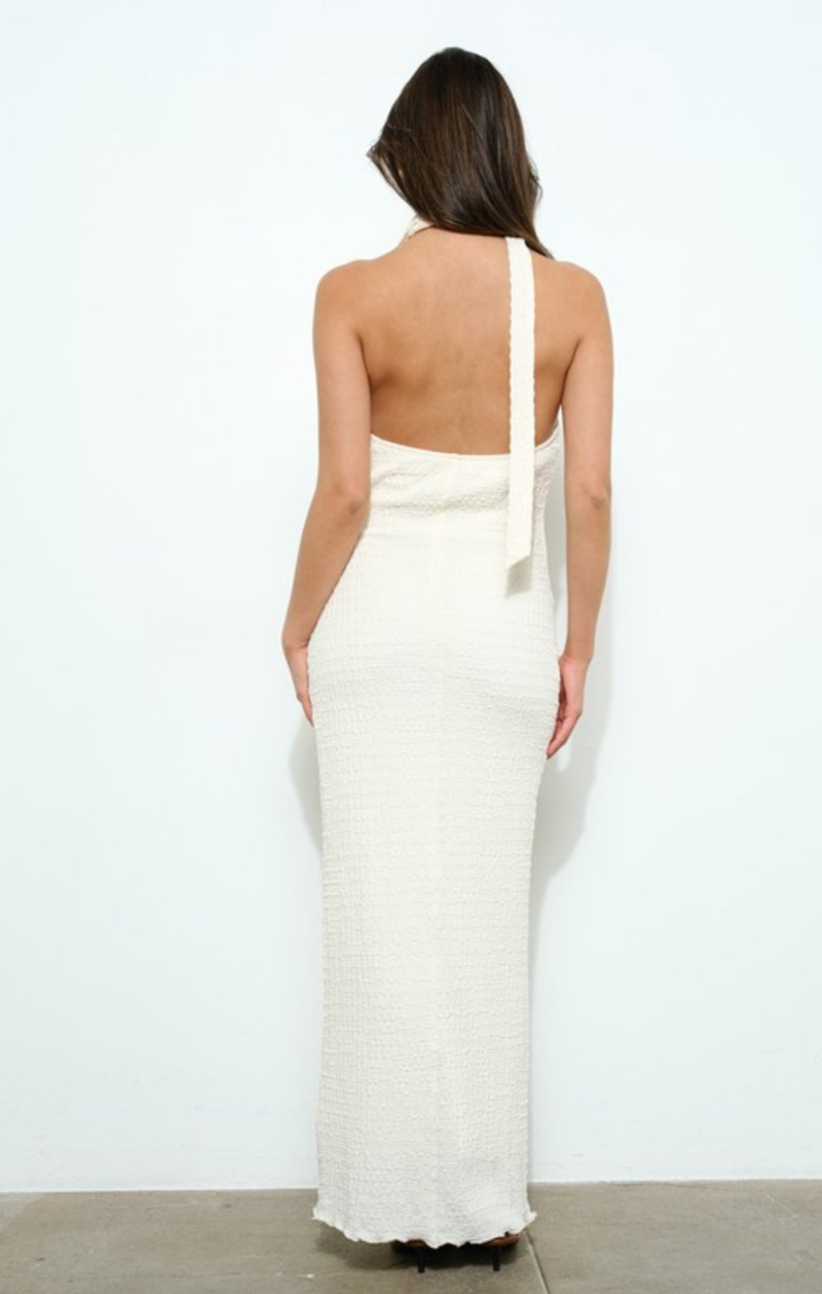 This black halter maxi dress features a flattering V-neckline and a cool, stretchy fabric that ensures comfort throughout the day. Its versatile design effortlessly balances elegance and casual style, making it suitable for a wide range of occasions. Easy to wear and maintain, this dress is a sophisticated choice for those seeking both style and practicality.