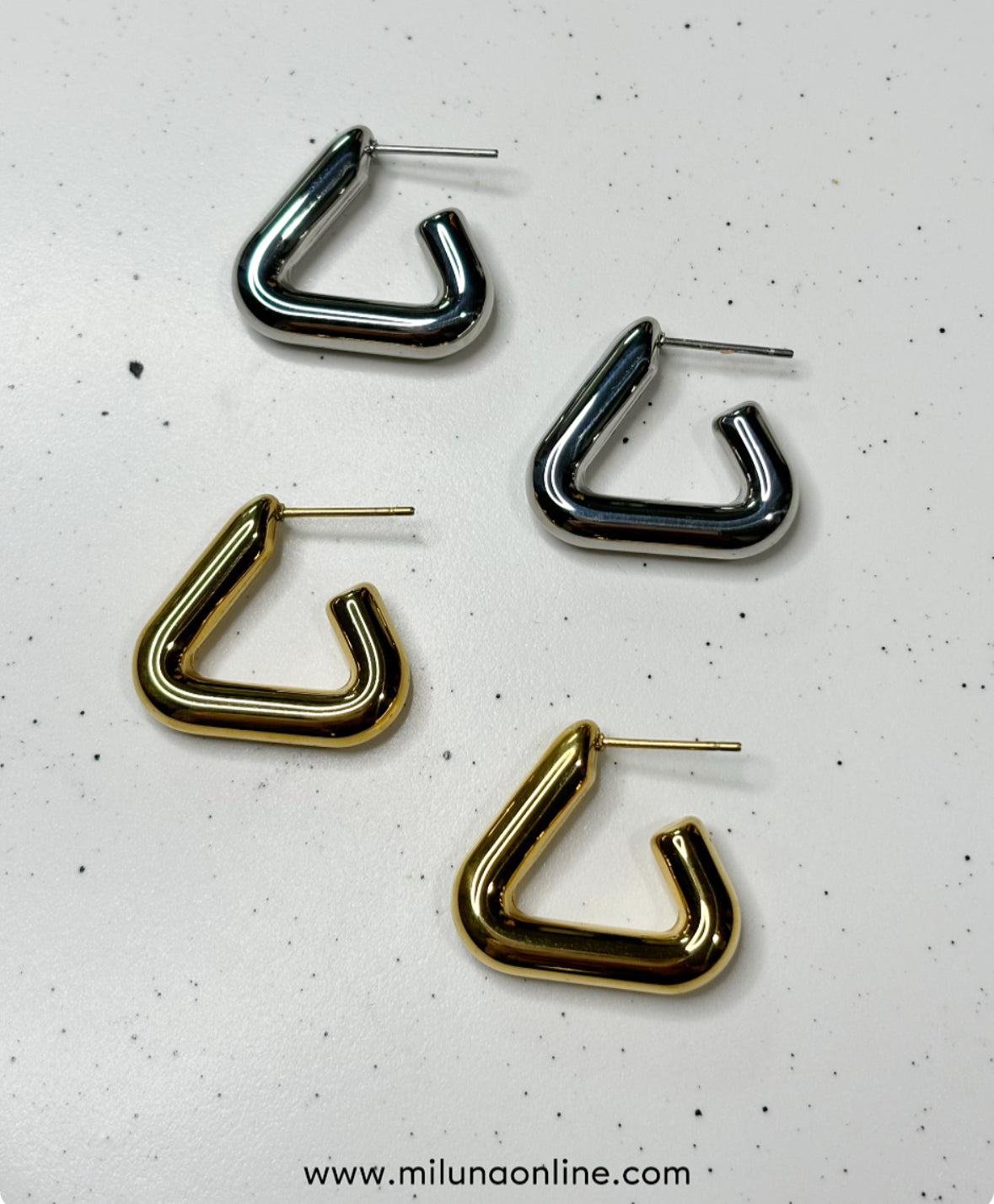 Introducing our Triangle - Hoop Earrings, featuring a unique and stylish triangular design. Crafted with precision and elegance, these earrings are sure to elevate any outfit with sophistication. Embrace your bold side and make a statement with these stunning earrings.